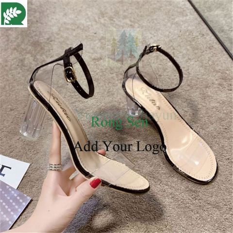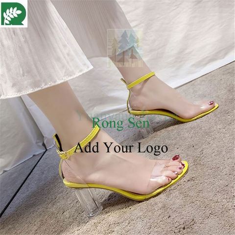 Novedad de verano, sandalias transparentes para mujer, cristal coreano, 100 pares con tacón grueso, sandalias informales, tacones altos para mujer