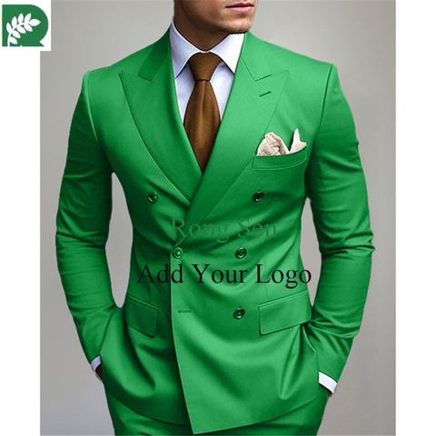 Trajes ajustados de lana con rayas de color de doble botonadura para hombres de negocios (solo chaqueta)